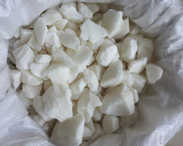 外觀::白色塊狀晶體。生產(chǎn)包括2個步驟,第一液體在特殊容器中自然結(jié)晶,第二步經(jīng)過破碎機破碎成不等大小的塊,第三步通過篩網(wǎng)篩選出所要求的無鐵硫酸鋁規(guī)格尺寸。